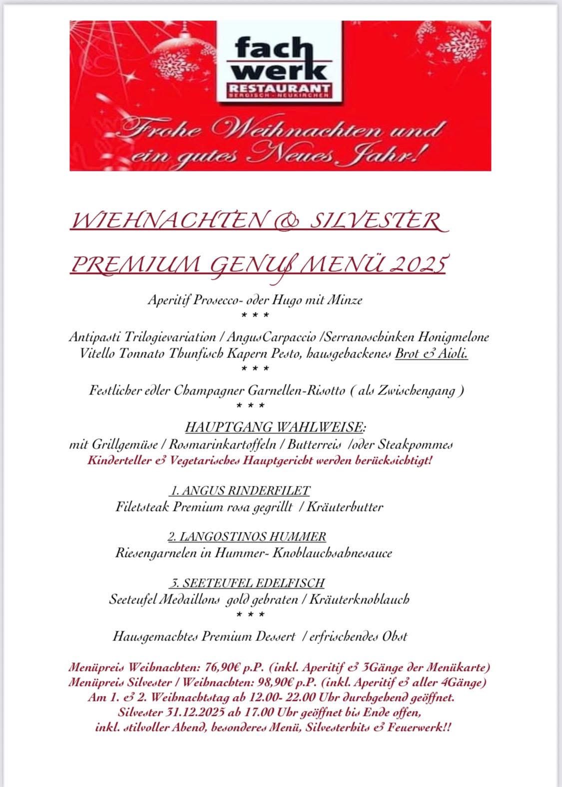 WEIHNACHTEN & SILVESTER 2025💝🥂🍽